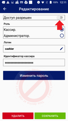 Авторизация и работа с zPOS.АРМ Кассира заблокированного пользователя невозможна.