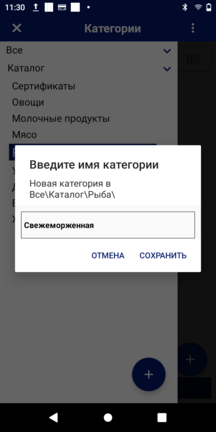 Для отмены команды создания новой категории и перехода в главное меню нажмите кнопку «Отмена».