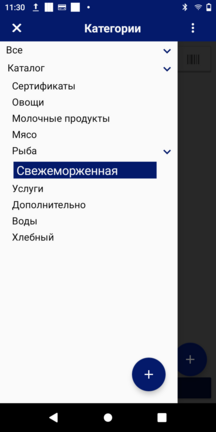 Также в каждую категорию можно добавить подкатегорию. Для добавления подкатегории выберите нажатием категорию в которую хотите добавить подкатегорию и нажмите кнопку "+" в нижнем правом углу области бокового меню. Введите наименование подкатегории и нажмите кнопку Сохранить.