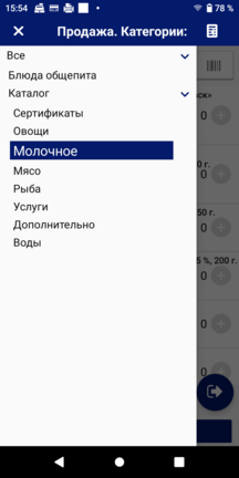 в заголовке окна и в появившемся дополнительном меню выберите нужную категорию или подкатегорию одинарным кликом. Список товаров выбранной категории откроется на экране «Продажа. Товары:».