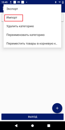 Список товаров можно просмотреть, нажав в главном меню кнопку «Товары». Откроется экран со списком товаров из импортированного товарного справочника.