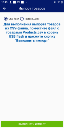 По окончанию импорта появится экран завершения. В корень USB-Flash, Я.Диска или FTP сервера будет отправлен файл-отчет по импорту ImportLog[Рег. Ном.]ггггммддччммсс.csv.