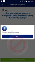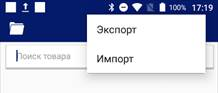 для вызова дополнительного меню опций и выбрать пункт «Импорт». На экране «Импорт товаров» нажать «Выполнить импорт».