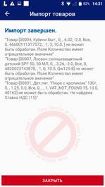 Информация о неуспешно загруженных позициях будет отображена на экране zPOS.Касса «Импорт товаров» с пояснениями. Необходимо исправить ошибки и повторить импорт товаров.
