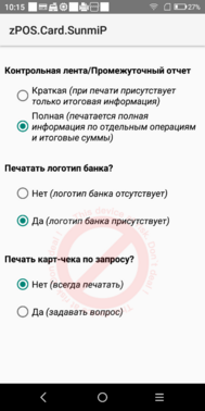Настройки приложения zPOS.Карточки