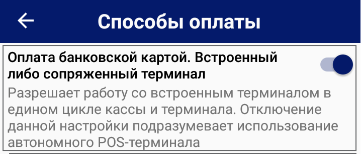 Отключение данной настройки подразумевает использование автономного POS-терминала.