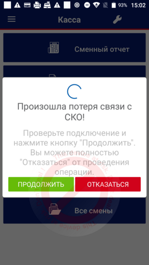 После восстановления связи с СКО и нажатии кнопки «Продолжить» происходит продолжение выполнения операции.