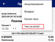 в заголовке экрана. В появившемся дополнительном меню опций выберите команду «Чек на email».