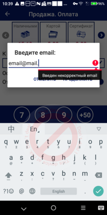 Отправка чека на email доступна только для операций, связанных с передачей чека покупателю (продажа, возврат). Чеки по таким кассовым операциям, как внесение или изъятие денежных средств, не могут быть отправлены на email.