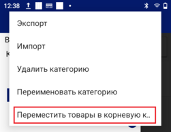 и в появившемся дополнительном меню выберите пункт «Переместить товары в корневую категорию».