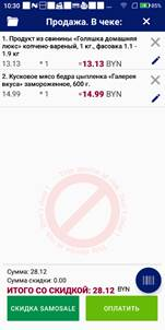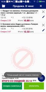 После на экране «Продажа. В чеке», нажать кнопку «СКИДКА SAMOSALE».