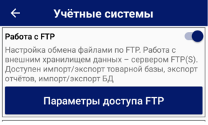 В системе реализована возможность работы с внешним сервером FTP или FTPS для обмена данными, такими как импорт/экспорт товарной базы, заказов, отчетов, а также резервное копирование базы данных. Это обеспечивает надежное хранение информации и защиту данных в случае сбоев оборудования.