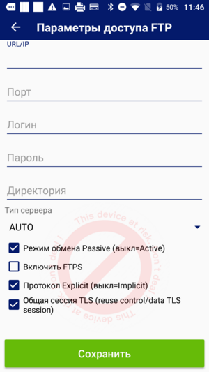 Работа с внешним хранилищем данных – сервером FTP(S)