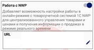 Работа с NWP Внешняя интегрированная система. Импорт товарной базы только из 1C, запрещено на устройстве редактировать товарную базу. Все документы передаются в 1C. Подробнее смотрите в Учетная система NWP.