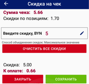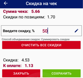 Для применения скидки на чек необходимо нажать «Сохранить».