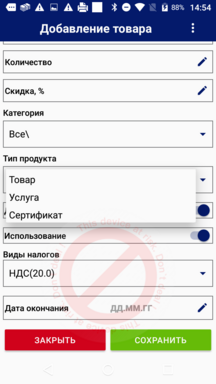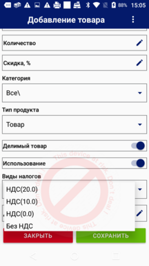Назначенная для товара ставка НДС автоматически учитывается при продаже. Для товаров могут применены различные ставки НДС.