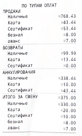 Дополнительный отчет с детализацией по "ПО ТИПАМ ОПЛАТ"