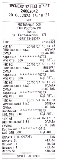 Промежуточный отчет с операциями по банковской платежной карточке