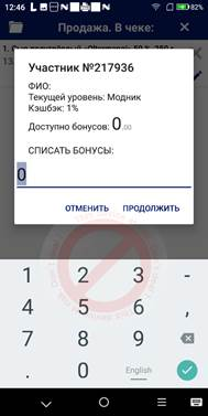 Для начисления бонусов необходимо нажать кнопку Продолжить.
