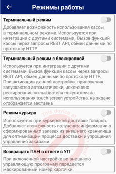 Используется при интеграции с другими системами. Вызов функций кассы через запросы REST API, обмен данными по протоколу HTTP. Исключено случайное нажатие на экран, тач-скрин заблокирован.