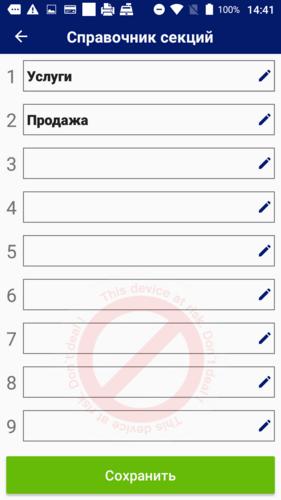 Реализована возможность продажи на 9 различных секций. По умолчанию каждая секция имеет наименование «Секция <номер>», например, Секция 1, Секция 2 и т.д.