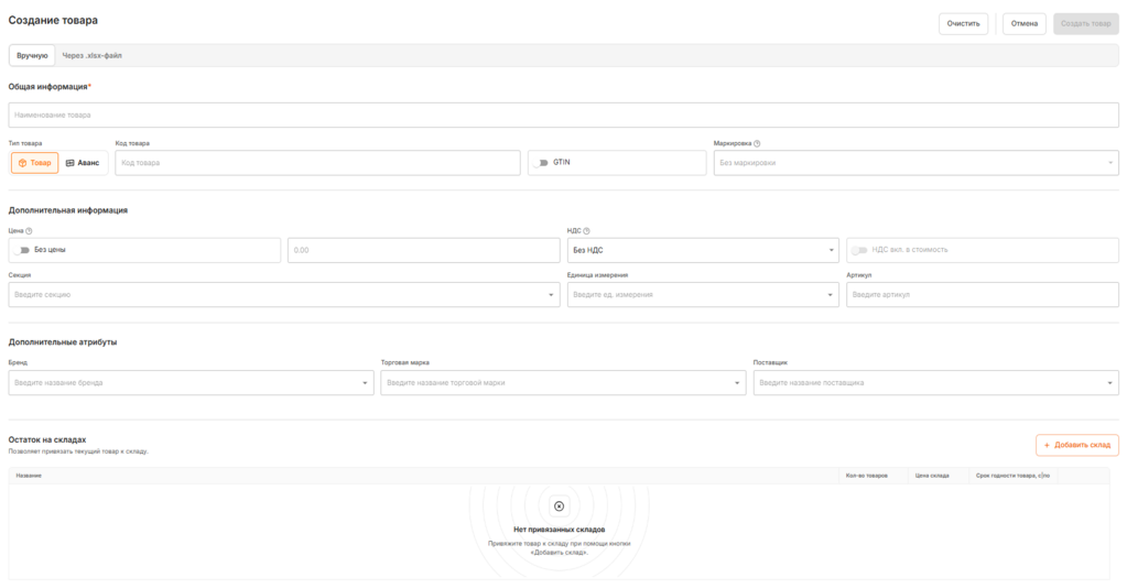 Примечание: Поле «Код товара» - является обязательным полем для заполнения.