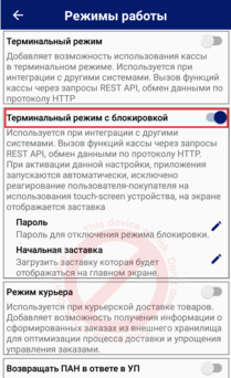 реализован режим работы приложения, исключающий реагирование пользователя-покупателя на использования touch-screen устройства;