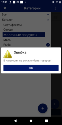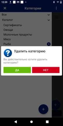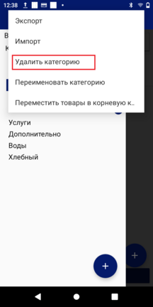 Для удаления категории товаров в zPOS.АРМ Кассира, в дополнительном меню выберите пункт «Удалить категорию».