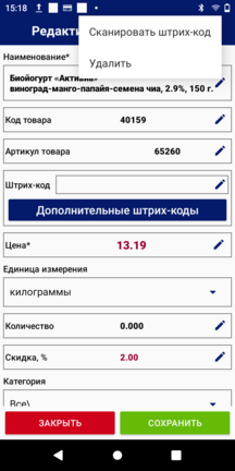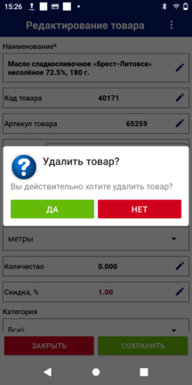 Из списка товаров выберите необходимый для удаления товар и кликните по нему для перехода к экрану "Редактирование товара".
