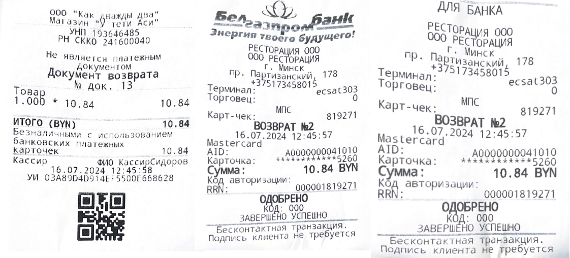 Возврат денег может осуществляться полностью по чеку или частично (часть суммы чека).