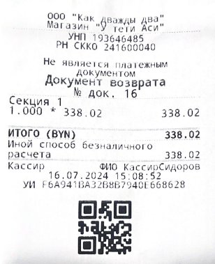 Документ о возврате денег по чеку появится на экране в электронном виде, а также будет отправлен на печать.
