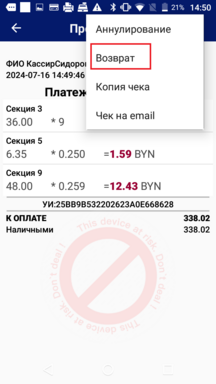 В дополнительном меню выберите команду «Возврат».