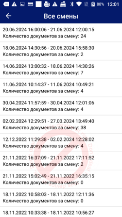 По каждой смене хранится дата и время её начала и окончания, а также количество документов.
