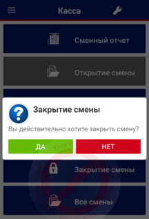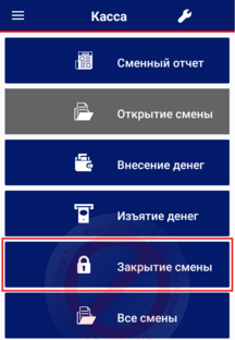 На экране «Касса» нажмите кнопку «Закрытие смены».