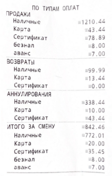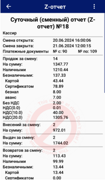 В электронном варианте отечёт отображается на экране Главное меню/Касса/Сменный отчет.