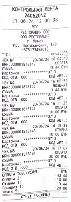 Контрольня лента - это отчет со всеми операциями по банковской платежной карточке за смену.