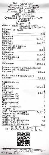 Печатная форма Суточного (сменного отчета (Z отчет)