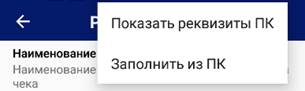 Поля «Наименование организации», «УНП» и «№КСА» заполняются с помощью команды «Заполнить из ПК» в дополнительном меню опций